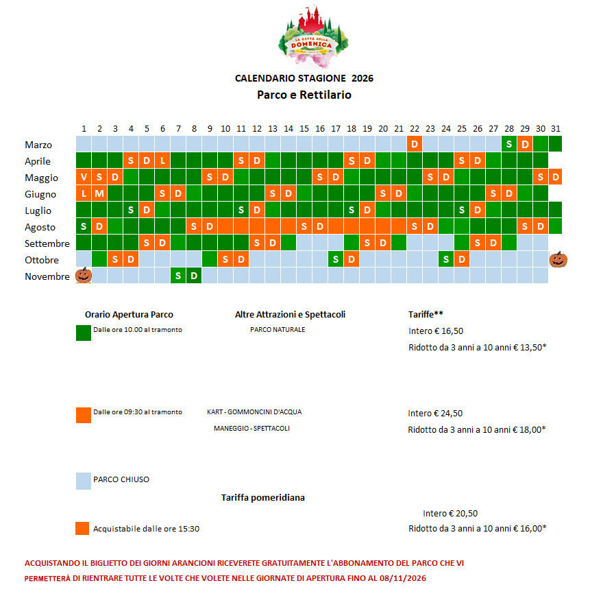 con il primo ingresso è possibile tornare gratuitamente per tutta la stagione.