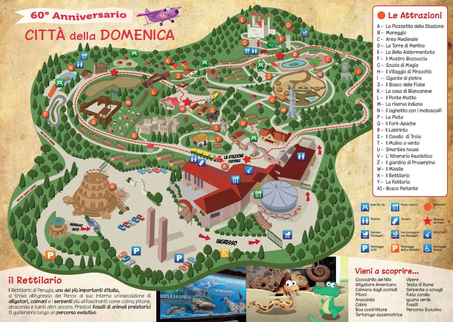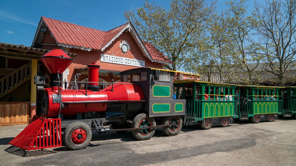 Tra le attrazioni più amate resta lo storico trenino, che accompagna i visitatori lungo un percorso panoramico all’interno del parco.