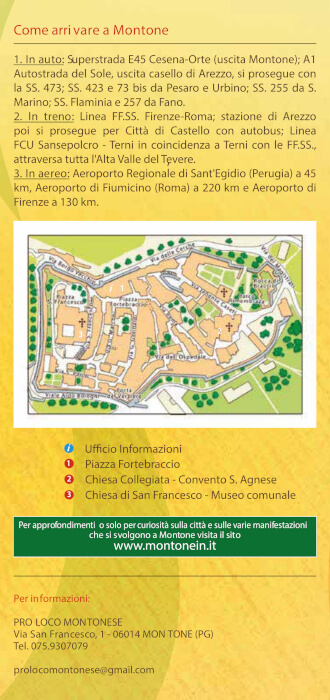 Tra il 1470 e il 1477 Carlo Fortebracci, conte di Montone, per le sue virtù militari, ereditate di certo dal padre Braccio, combatteva al servizio della Serenissima Repubblica di Venezia; qui ricevette in dono una Spina della Corona del Cristo, la portò in dono a Montone e ne decretò la festa il Lunedì dell’Angelo. La leggenda racconta che la Spina fiorisse il Venerdì Santo emanando un dolcissimo profumo. Il richiamo della reliquia era talmente grande, i pellegrini tanto numerosi, che nei primi anni del ‘600, per motivi di ordine pubblico, fu ordinata una seconda ostensione. Dal 1798, quando la chiesa di S. Francesco fu incendiata, la Spina nel suo prezioso reliquiario è custodita dalle suore del Convento di S. Agnese. Se ne festeggia l’ostensione il Lunedì dell’Angelo e la penultima domenica di Agosto in un clima intriso di religiosità popolare e storia.
