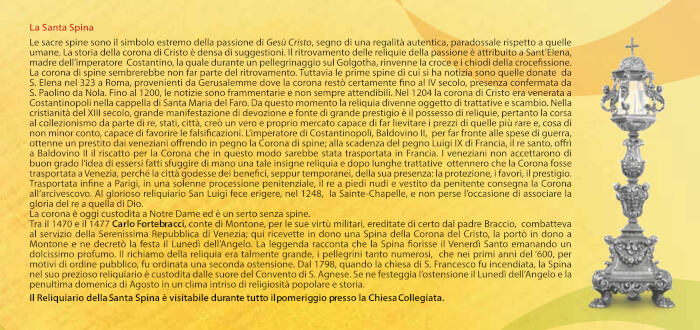 Il Reliquiario della Santa Sppina è visitabile durante tutto il pomeriggio presso la Chiesa Collegiata.