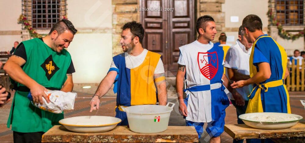 Sotto il proprio gonfalone i contradaioli parteciperanno a quattro avvincenti sfide con lo scopo di conquistare le chiavi della città.