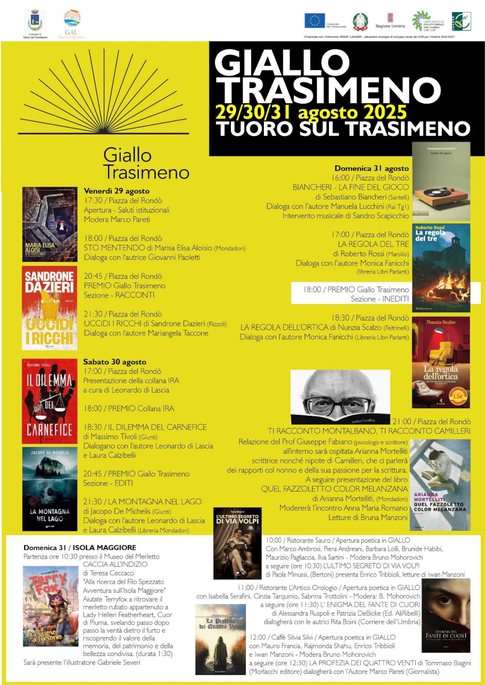 Quinta edizione di Giallo Trasimeno, un festival nazionale del libro nei generi fantascienza, storico, poliziesco, thriller, spionaggio, noir.