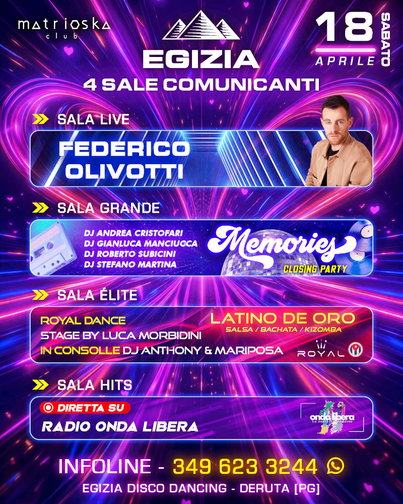Al Matrioska, ultimo appuntamento stagionale con Memories 80's-90's, la migliore musica di quegli anni tutta da ballare.