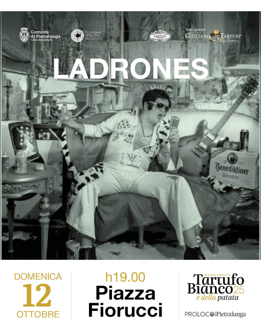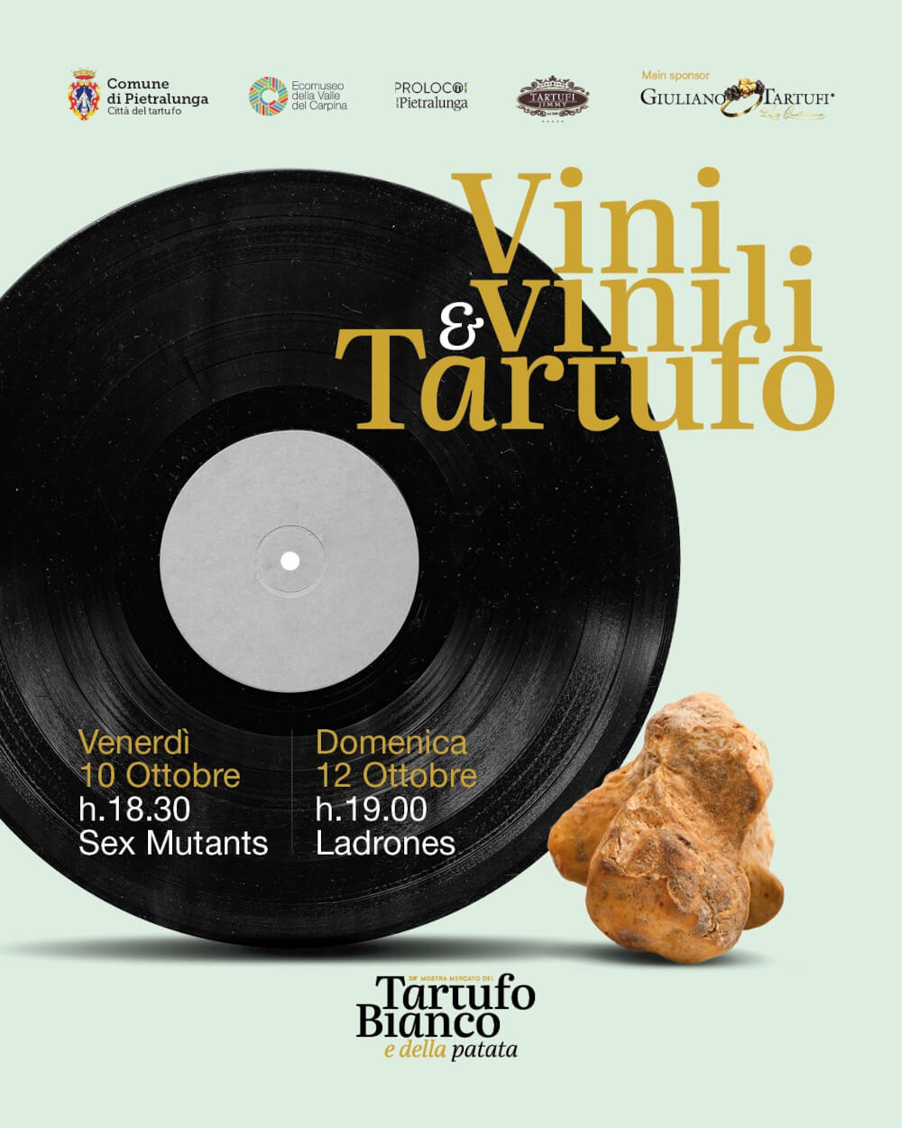Ore 19:00 | Piazza Fiorucci Vini Vinili e Tartufo - Musica dal vivo con i Ladrones Cena presso i nostri ristoranti a base di tartufo e patata |