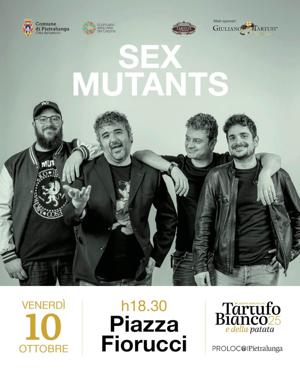 Ore 18;30 | Piazza Fiorucci Vini Vinili e Tartufo - Musica dal vivo con i Sex Mutants Cena presso i nostri ristoranti a base di tartufo e patata |