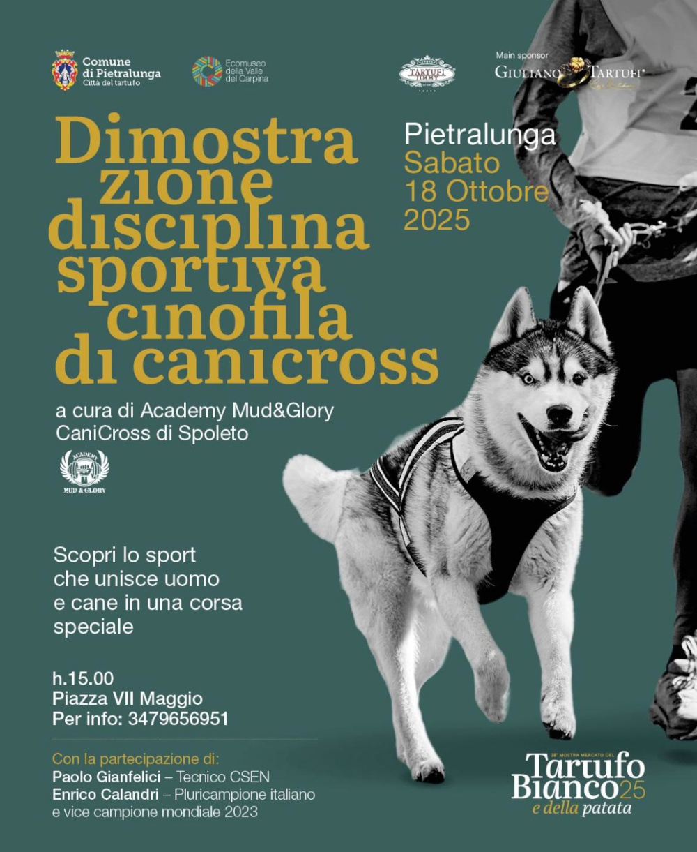 Dalle ore 15:00 | Piazza VII Maggio Dimostrazione disciplina sportiva cinofila di canicross a cura di Academy Mud&Glory CaniCross di Spoleto. Con la partecipazione di Paolo Gianfelici - Tecnico CSEN e Enrico Calandri – Pluricampione italiano e vice campione mondiale 2023. Per info 3479656951 |