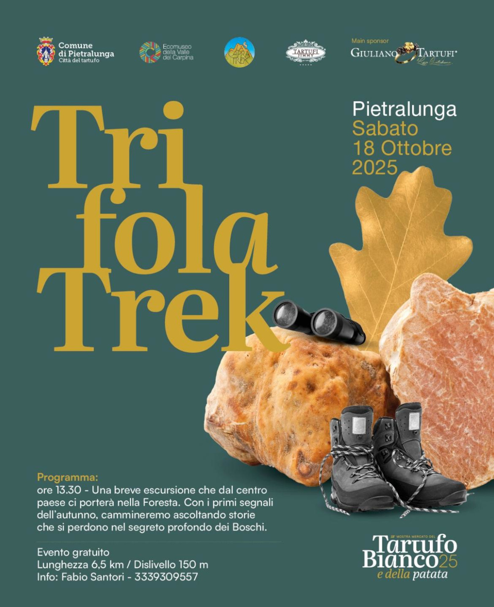 Ore 13:30 | “Trifola Trek. Storia di Tartufi e Tartufai” - Una breve escursione che dal centro paese ci porterà nella Foresta. Con i primi segnali dell’autunno, cammineremo ascoltando storie che si perdono nel segreto profondo dei Boschi. Lunghezza 6,5 km - dislivello 150 m. Per info: Fabio Santori 3339309557 |