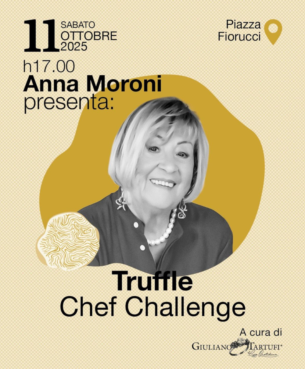 Dalle ore 15:00 alle ore 17:00 | Piazza Fiorucci Anna Moroni presenta la “Truffle Chef challenge” - a cura del main sponsor Giuliano Tartufi |