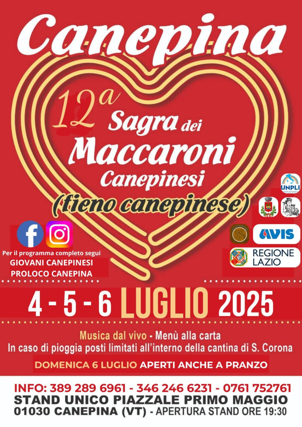 La Sagra dei Maccaroni Canepinesi, alla 12ª edizione, ha luogo a Canepina, un comune in provincia di Viterbo a pochi chilometri dall'Umbria.