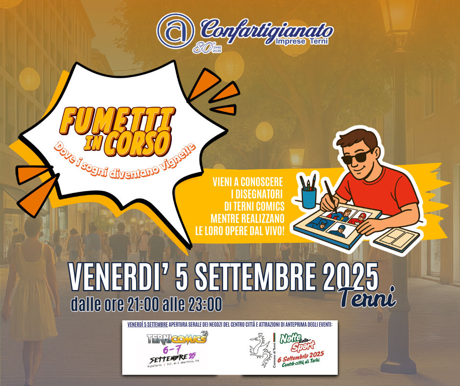 • postazioni con fumetti dal vivo di disegnatori di Terni Comics – vieni a conoscere i disegnatori di Terni comics mentre creano le loro opere