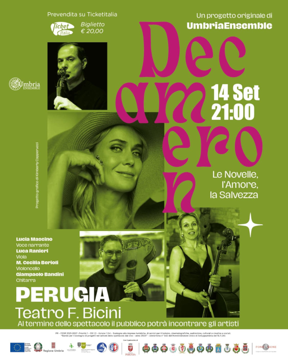 Lo spettacolo gioca in felice contrappunto tra le novelle di Boccaccio e le musiche dal vivo di Vincenzo Galilei, Antonio Vivaldi, Niccolò Paganini, Gioacchino Rossini, per quello che oltre alla celebrazione dell' anniversario boccacciano intende essere un grande omaggio all'Italia e alla sua cultura.