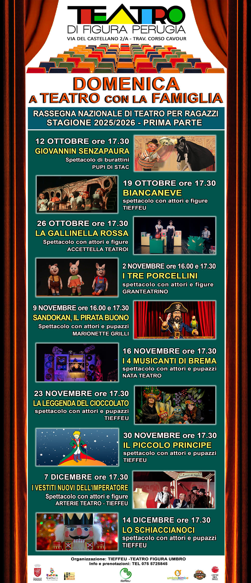 Al via la prima parte della 12ª Stagione di Teatro per ragazzi al Teatro di Figura Perugia, organizzata da Tieffeu, con 12 spettacoli dal 12 ottobre al 14 dicembre 2025.